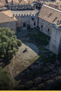 Il Castello di Sermoneta è una delle più imponenti fortificazioni medievali del Lazio, costruito a metà del XIII secolo dagli Annibaldi come rocca militare in posizione strategica tra Roma e Napoli. La struttura originaria comprendeva il Maschio, una torre in origine organizzata su quattro livelli e con un’elevazione maggiore di quella attuale, e la contro-torre ad esso affiancata detta il Maschietto e un grande edificio adiacente di cui restano solo le fondazioni.